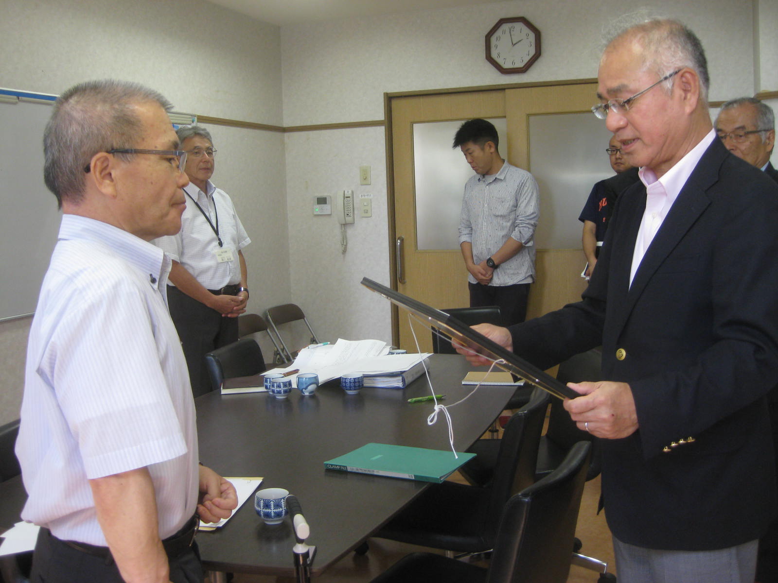 平成30年度協力事業所顕彰のため、常務理事と専任担当理事が7月8日、フンドーキン醬油株式会社福岡支店(箱崎ふ頭5丁目)を訪ね、感謝状を贈呈しました。