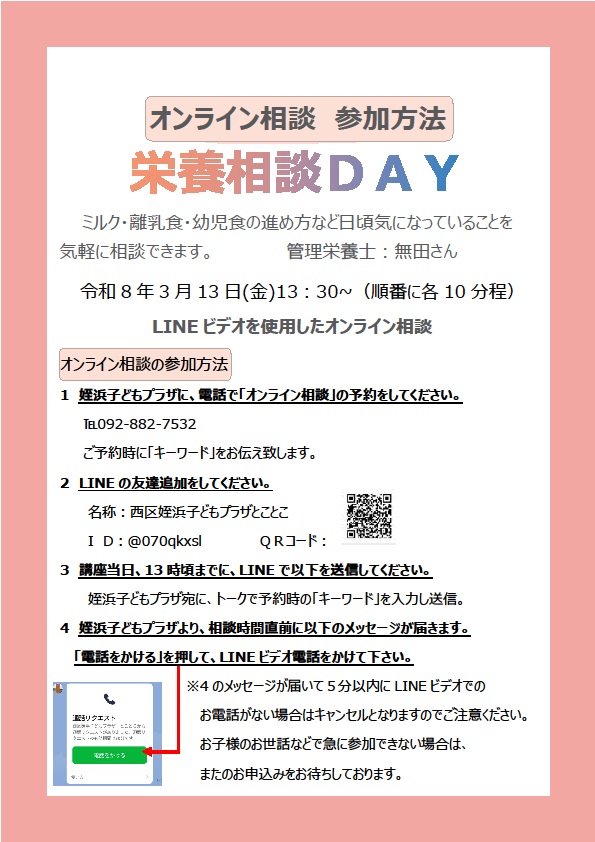 3月13日栄養相談DAY(オンライン相談の参加方法)